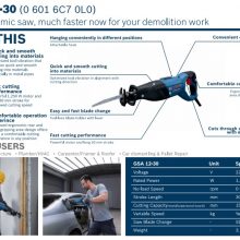 - Powerful motor and long 30mm stroke for improved cutting speed