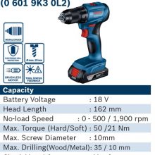 | Max. drilling diameter in steel | 10 mm |